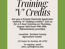 Are you a Private Pesticide Applicator seeking "V" (Safety) credits? Join us for a 2-hour training on Thursday, August 10th from 1PM-3PM. Refreshments provided.All pesticide applicators seeking V…